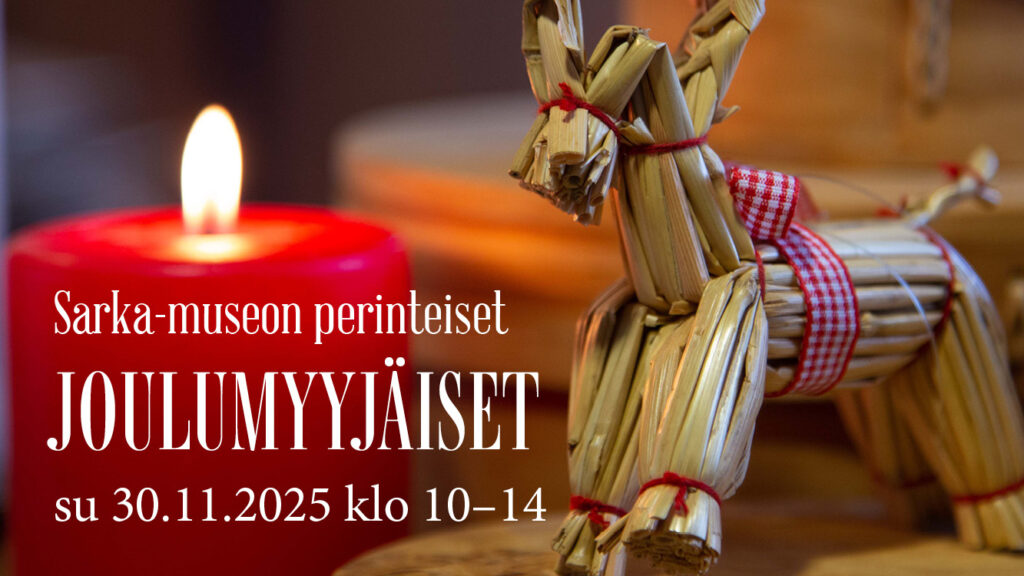 Joulumieltä ja käsityöläistuotteita!Saran perinteiset joulumyyjäiset järjestetään tänä vuonna 30.11. klo 10-14. Museolla on järjestetty omat joulumyyjäiset jo vuodesta 2005 saakka ja perinne jatkuu edelleen.